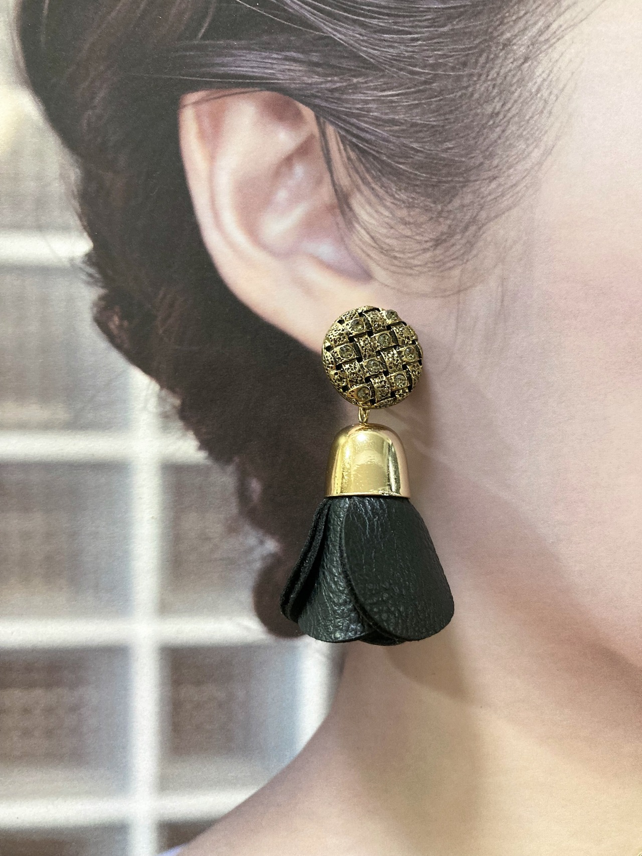 合皮の肉厚な黒薔薇がインパクトのあるピアスができました。