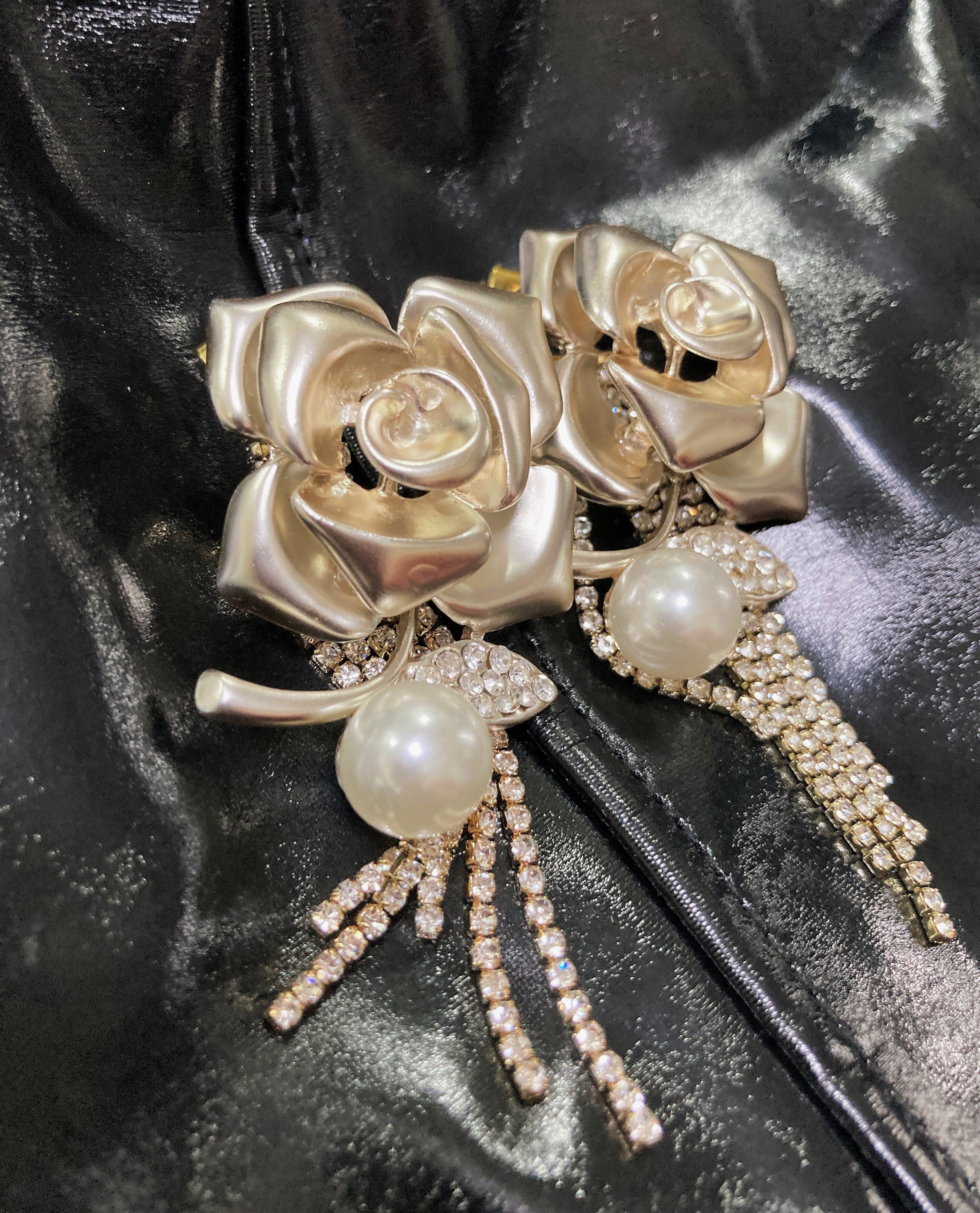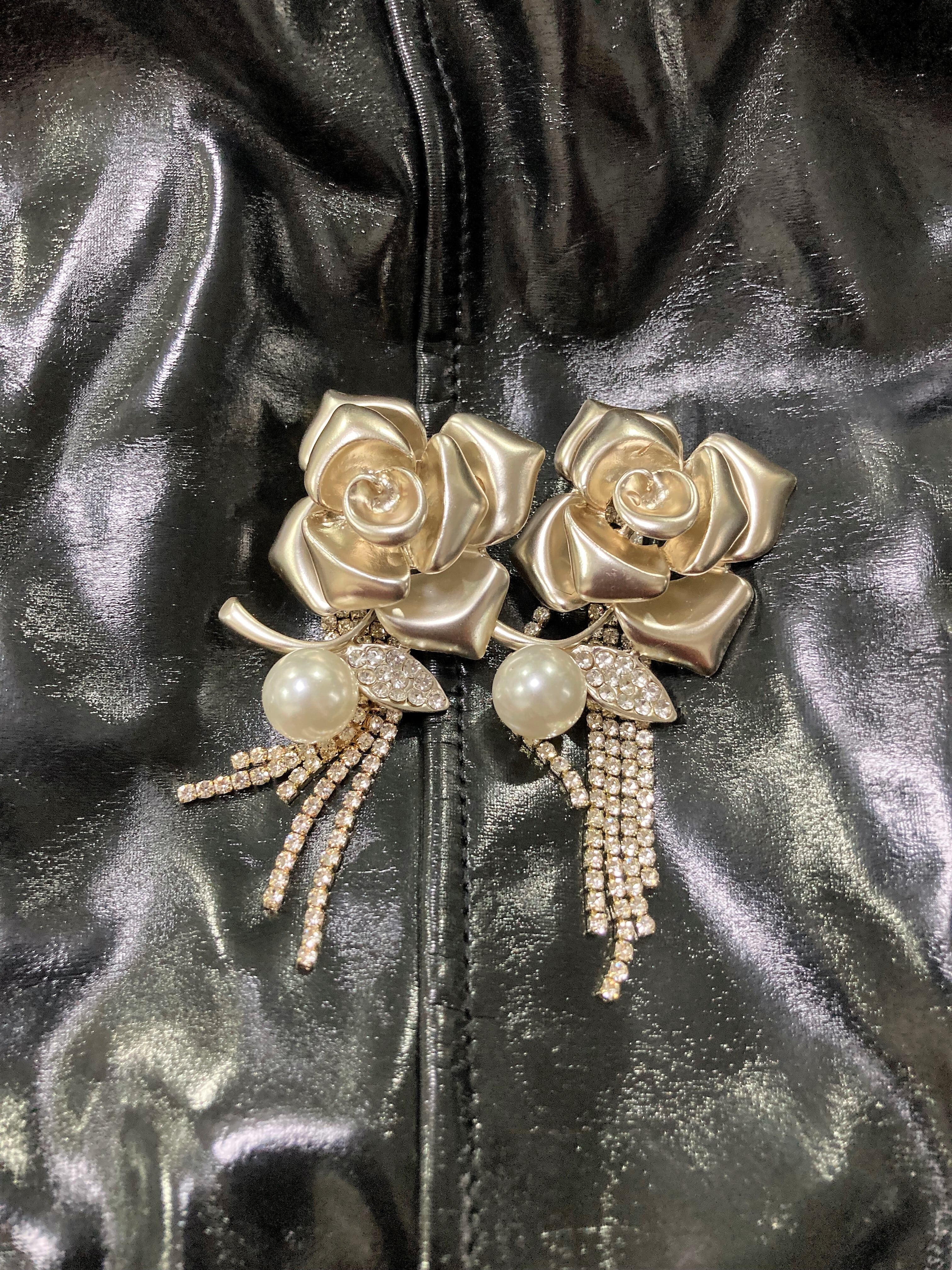 金属製のゴージャスで大きな薔薇がインパクトのあるピアスができました。
