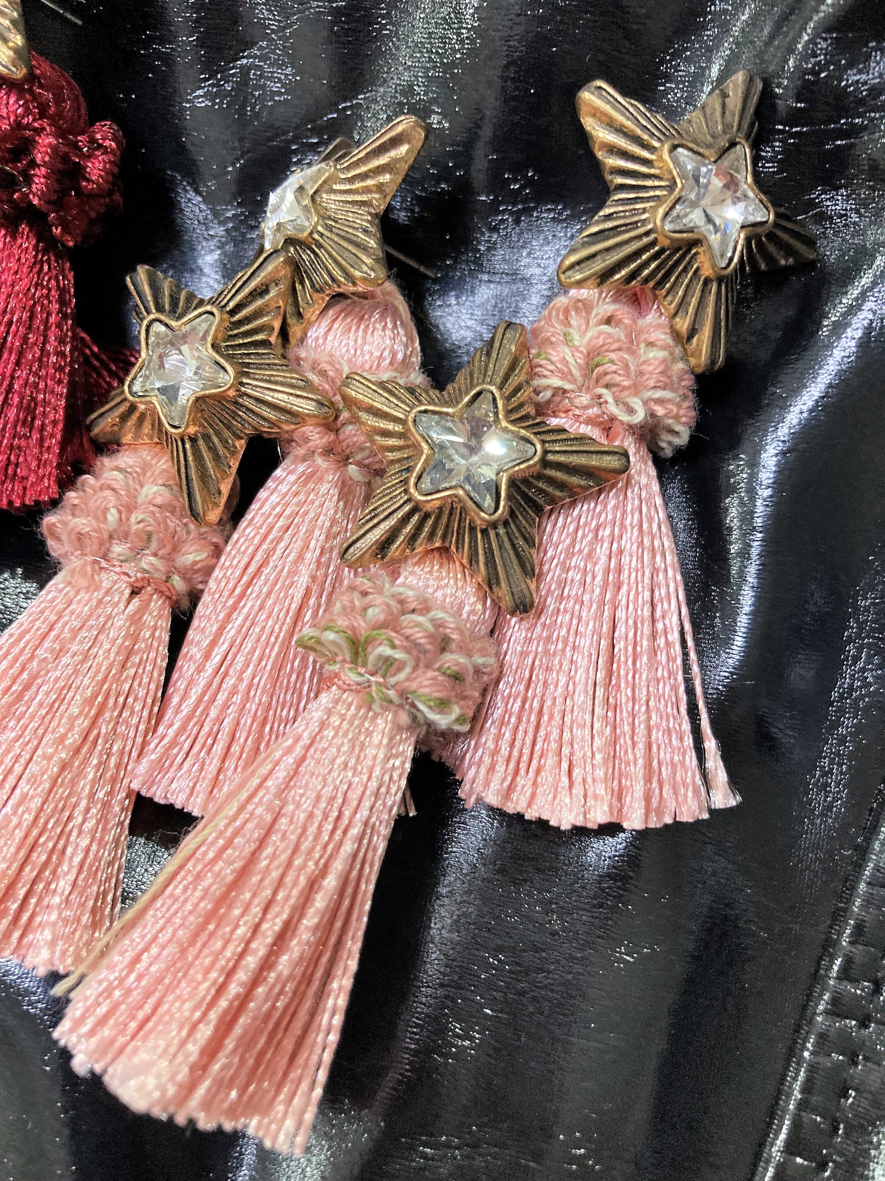 ヴィンテージ風スター×ゴージャスタッセルピアス(ピンク) T-023