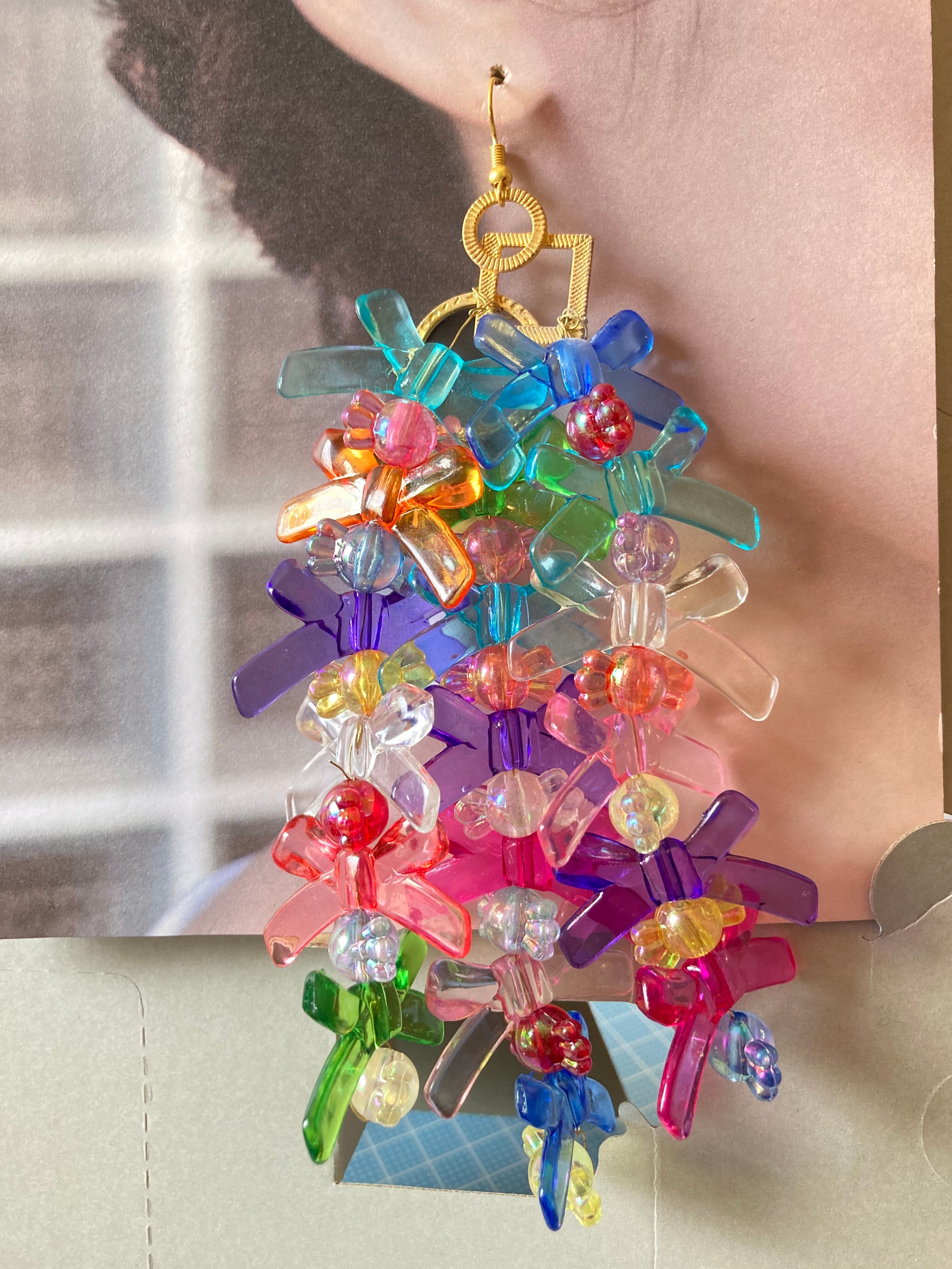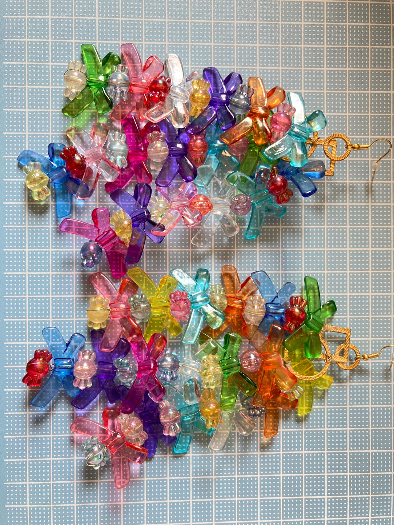 クリアカラーのカラフルなリボン&キャンディパーツをこれでもか!というほどに繋げました。